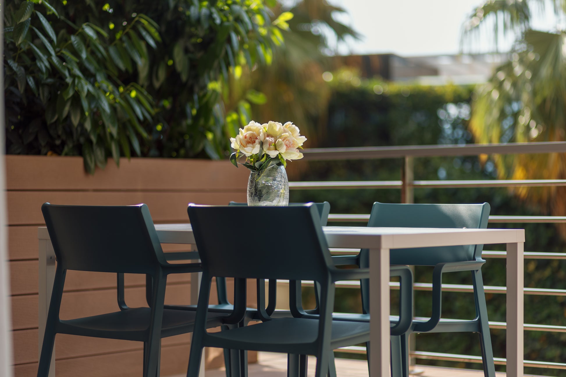 The apartment is 147m2 and has 3 bedrooms, 2 bathrooms, an open plan living area with kitchen and dining and a terrace with a mountain view.